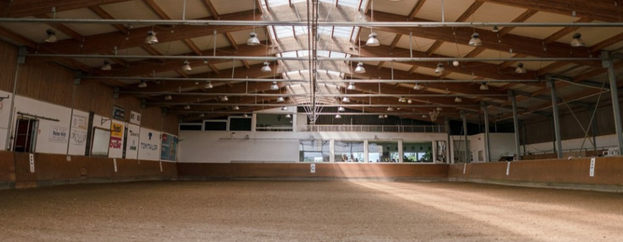 Die im Jahre 2000 neu erbaute, moderne und helle Reithalle ist das Herzstück unserer Anlage.