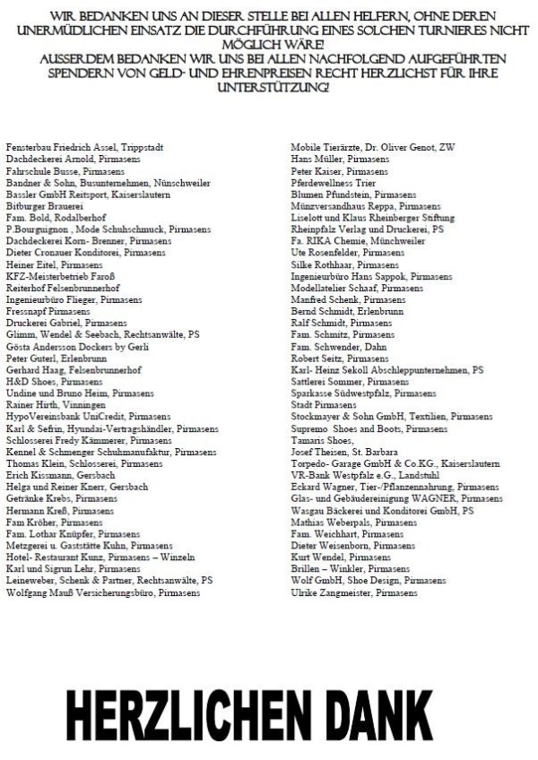 Ohne Sponsoren können Turniere und Veranstaltungen wie unsere nicht durchgeführt werden.